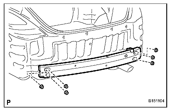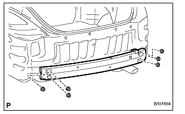 a. Remove the 6 nuts and rear bumper reinforcement sub-assembly.