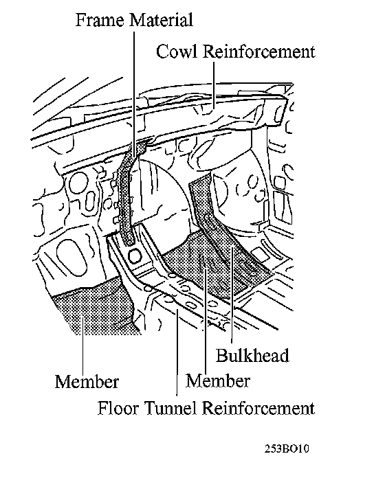 (2) A member is used at the bottom of the dash panel, and a bulkhead is used at the connection to reduce noise and vibration.