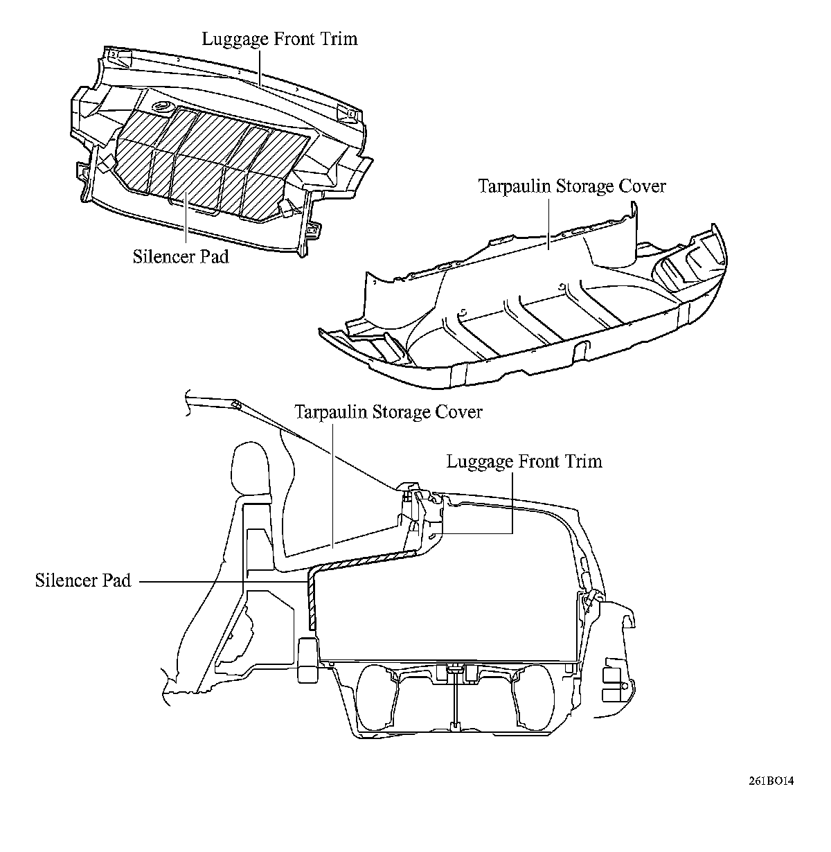 ^ A silencer pad has been adopted between the luggage front trim and the tarpaulin storage cover in order to minimize the entry of noise into the cabin.