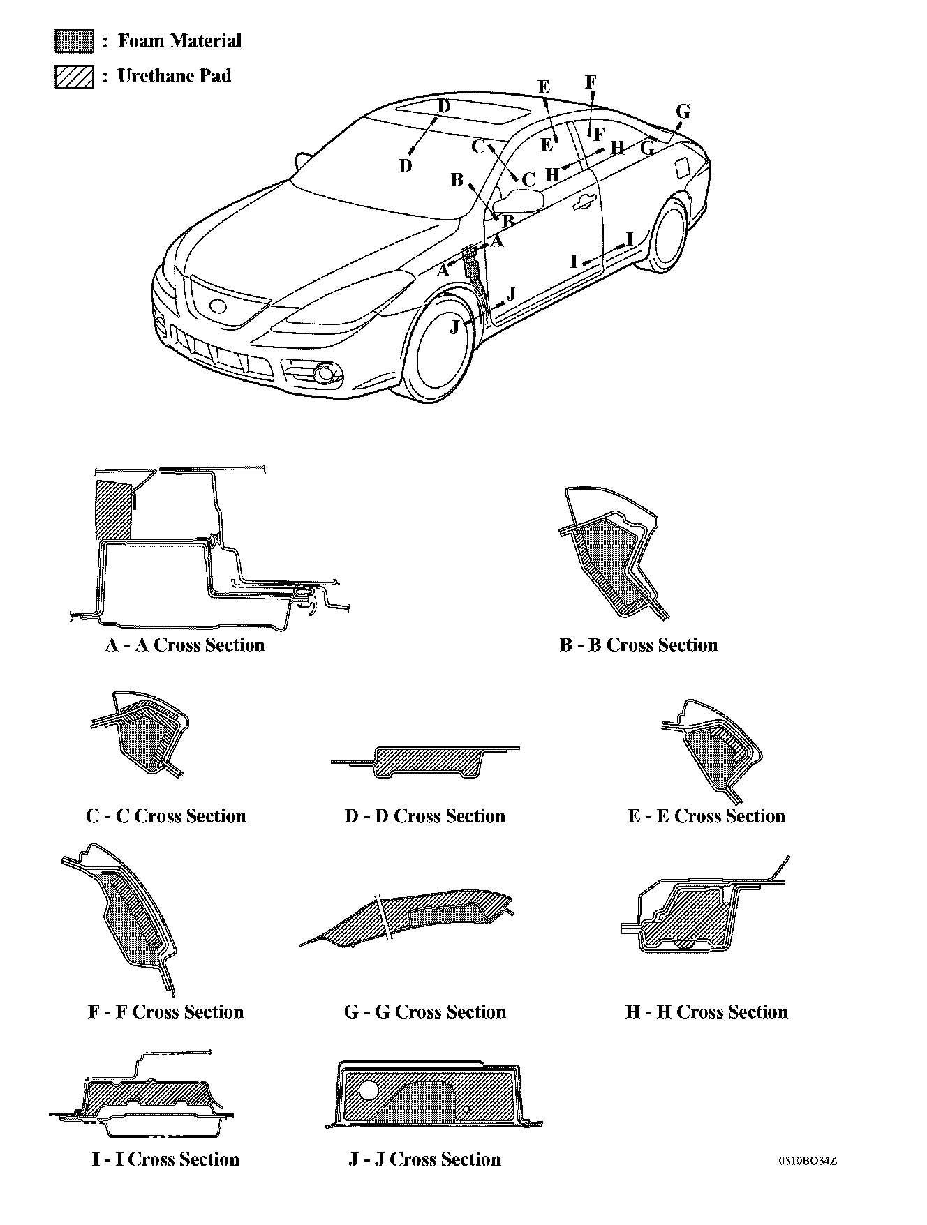 Acoustic sealing materials are provided in various areas of the body to achieve excellent sound insulation performance.