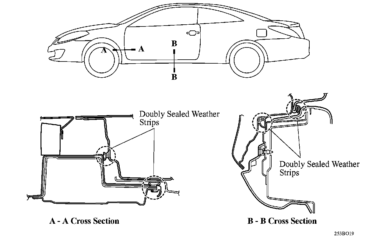 ^ Flush surfaces and double seal weather strip section are used to reduce the wind noise.