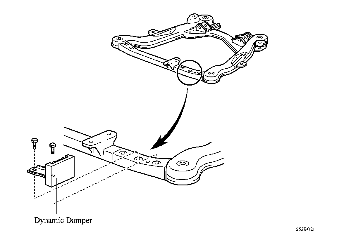 A dynamic damper is provided on the front suspension member to reduce the booming noise created by the engine.