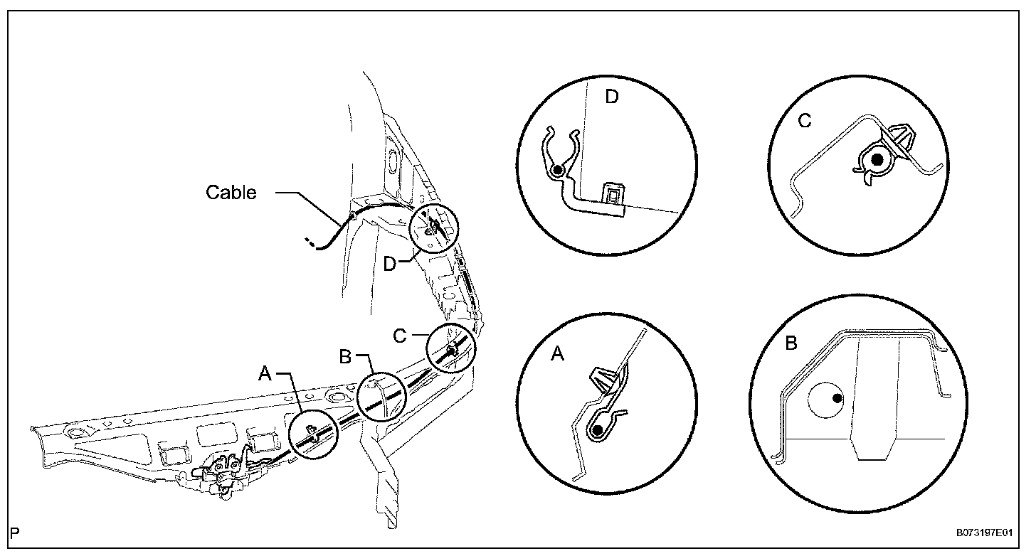 6. REMOVE HOOD LOCK CONTROL CABLE ASSEMBLY