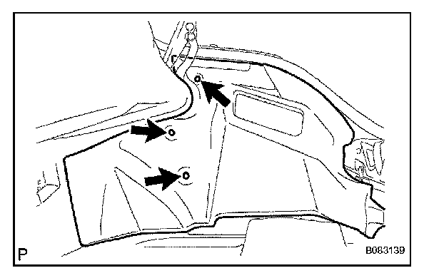 d. Using a clip remover, remove the 2 clips (inside vehicle).