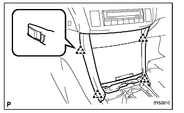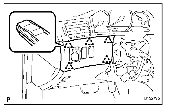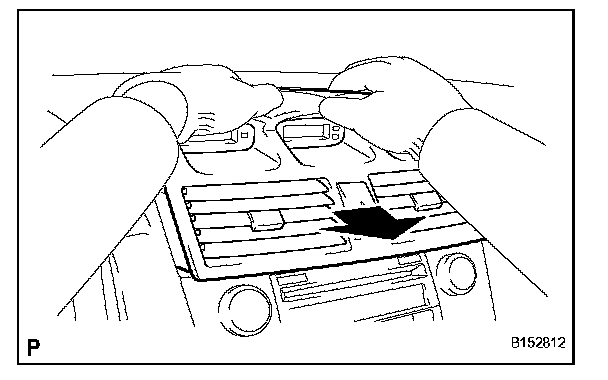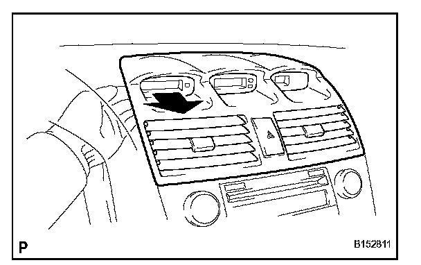 b. Pull the center instrument cluster finish panel sub-assembly towards you using your fingers to disengage each clip.