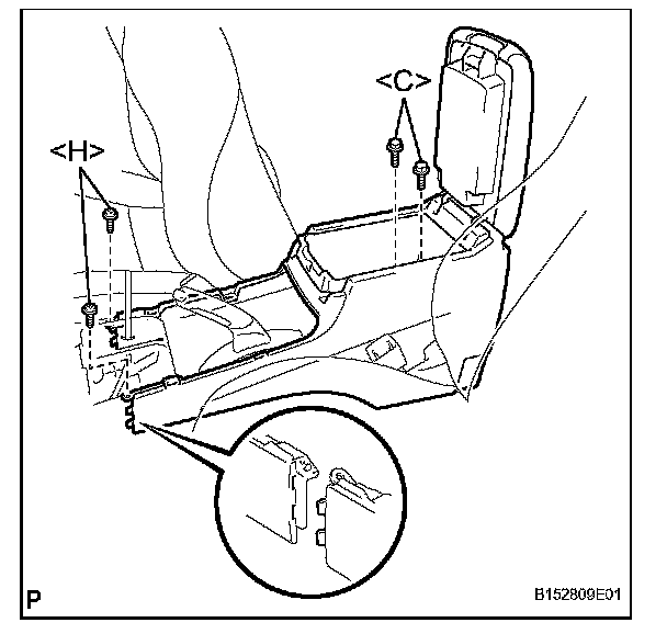 d. Disengage the 2 claws and remove the rear console box assembly.
