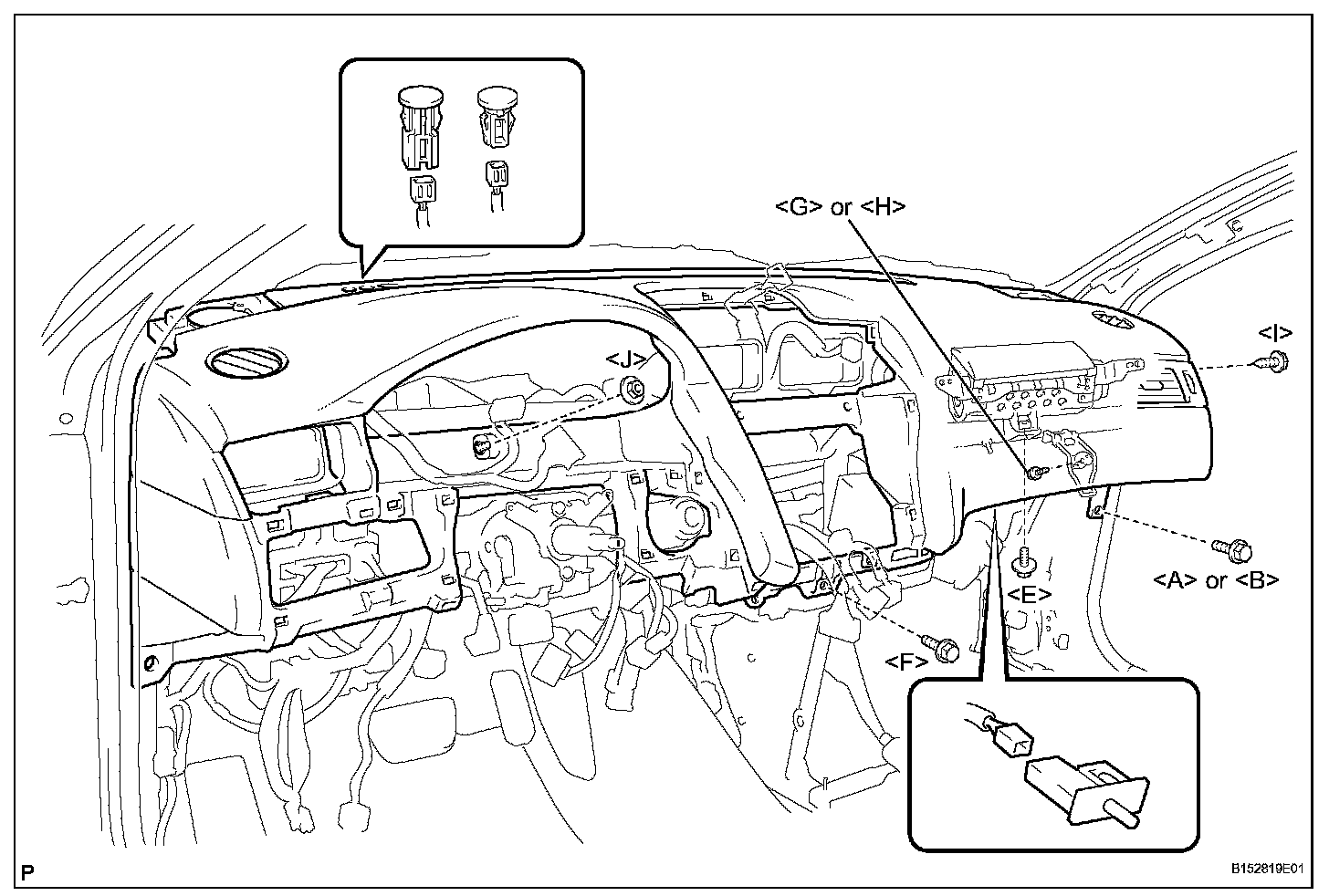 a. Temporarily install the instrument panel safety pad sub-assembly.