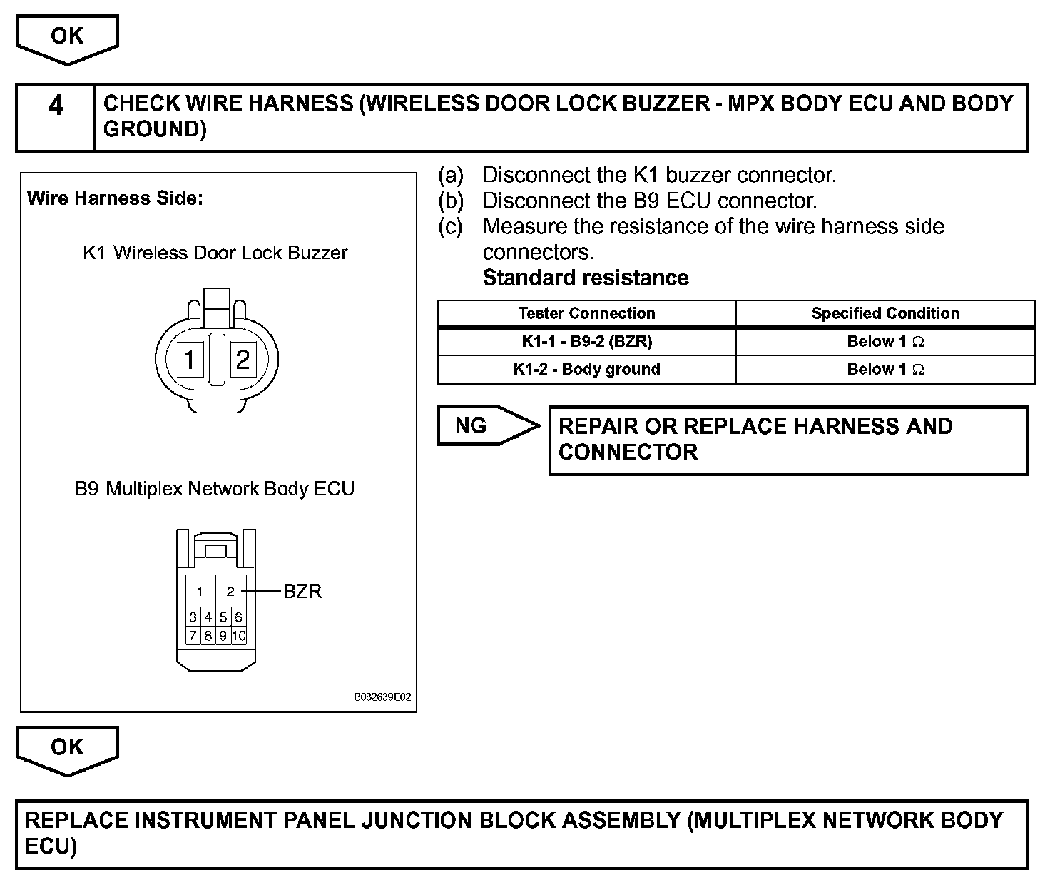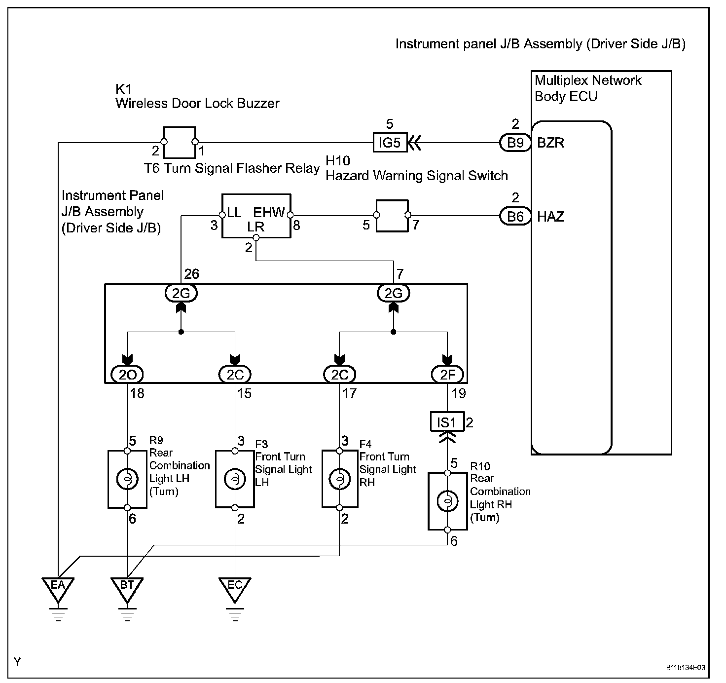 In some cases, wireless control functions are normal but the hazard warning light and wireless door lock buzzer answer-back functions are not. In such a case, the multiplex network body ECU's hazard warning light and wireless door lock buzzer signal outputs may be malfunctioning.