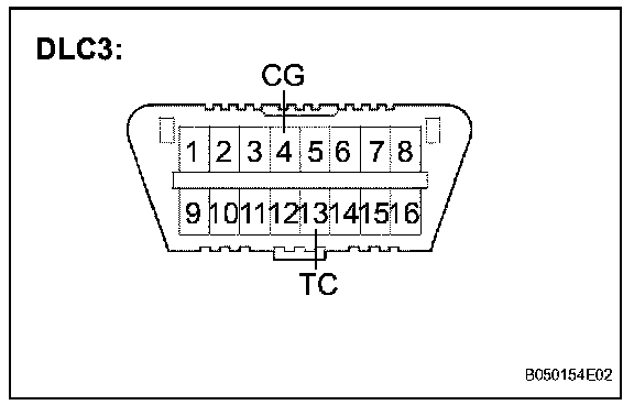 2. Using SST (diagnosis check wire No.2), short circuit terminals TC (13) and CG 4. of the DLC3.