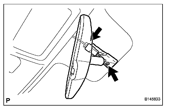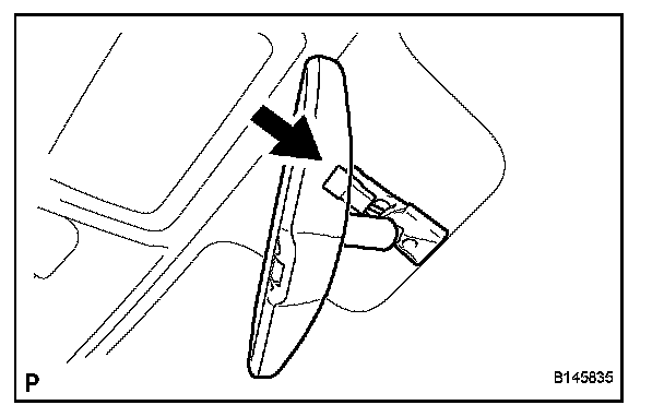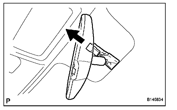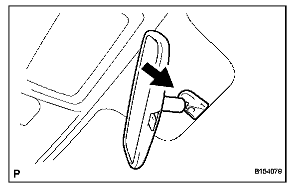 b. Slide the inner rear view mirror assembly in the direction indicated by the arrow shown in the illustration to remove it.