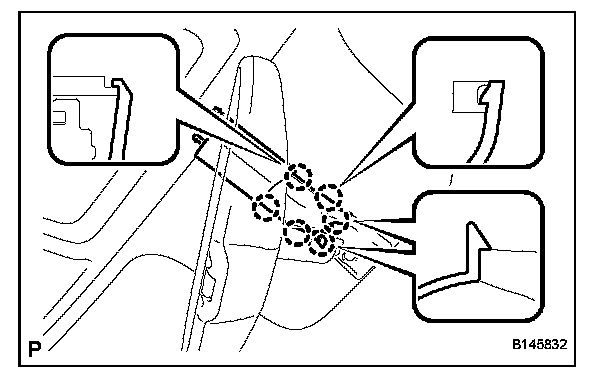 a. Engage the 6 claws and install the inner rear view mirror stay holder cover.