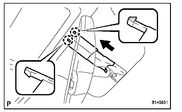 b. Engage the 2 claws and install the inner rear view mirror stay holder cover as shown in the illustration.