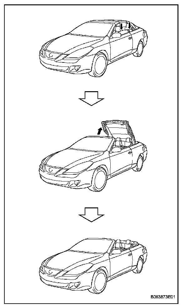 a. The SOLARA convertible has adopted a one-button operation (continuous operation), electric opening/ closing type convertible roof system. This system has the following features.