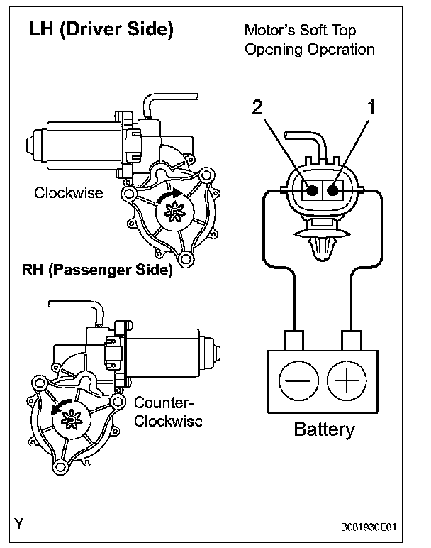 a. Motor's soft top opening operation: Inspect operation of the roof motor.