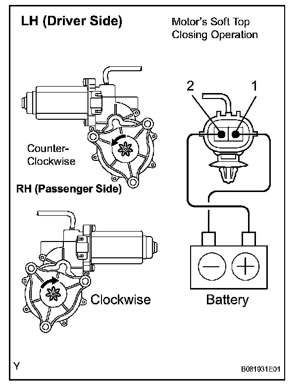 b. Motor's soft top closing operation: Inspect operation of the roof motor.