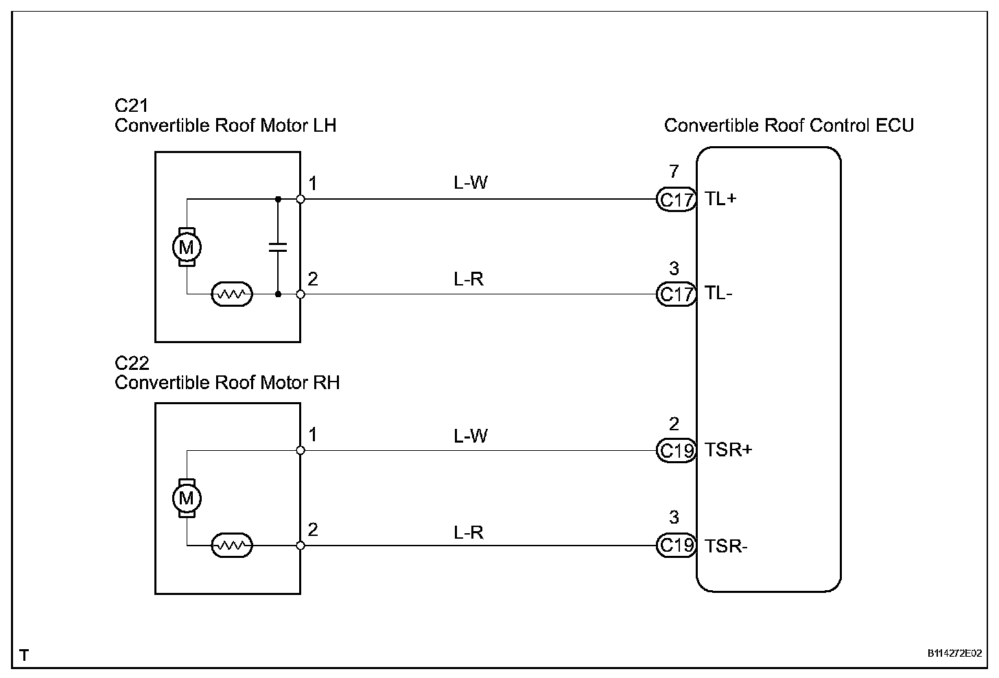 The convertible roof motors are installed in the left and right roof links. The roof motors drive the roof links directly and open/close the soft top. Pressing the convertible roof control OPEN/CLOSE switch activates the motors through the convertible roof control ECU.