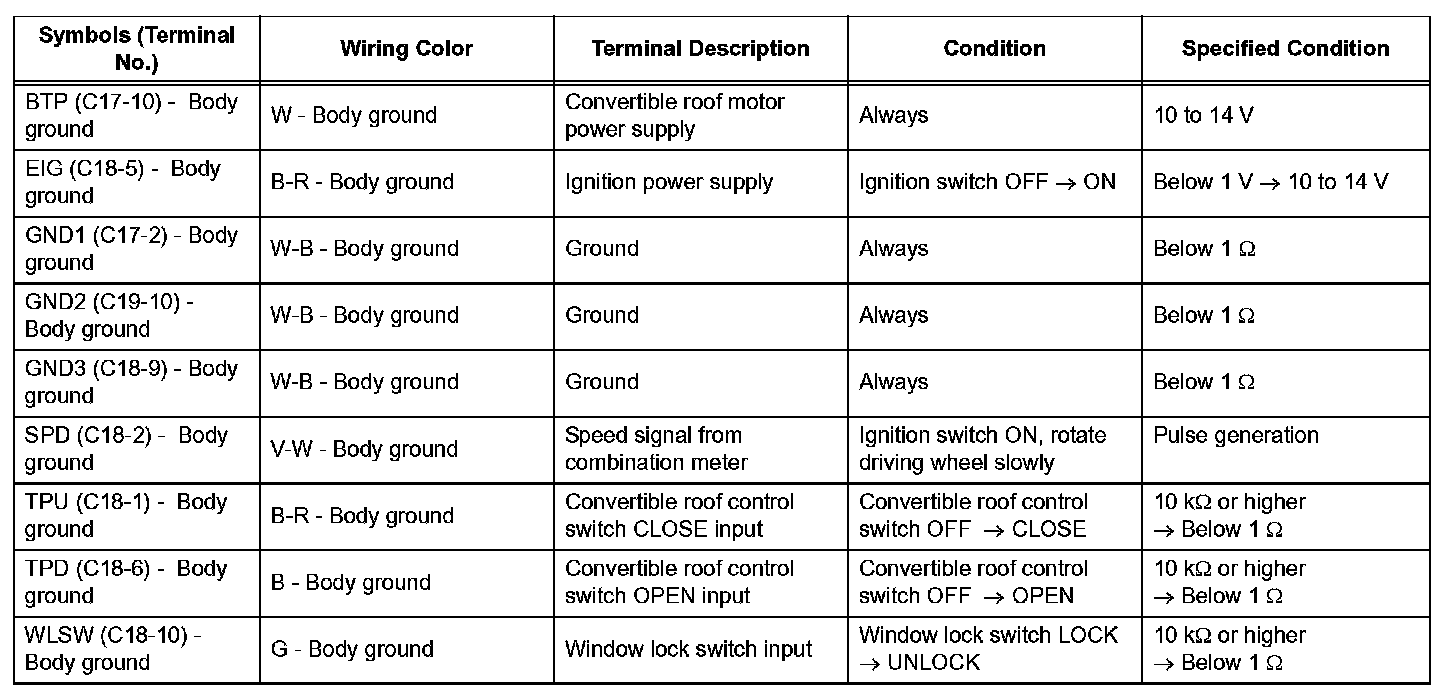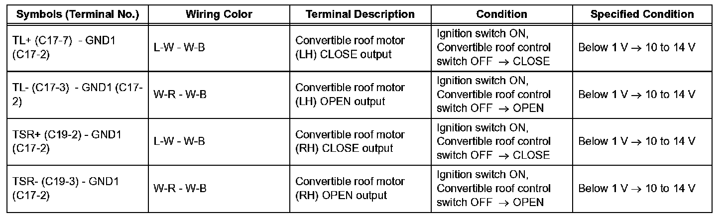TERMINALS OF ECU1. CHECK CONVERTIBLE ROOF CONTROL ECU