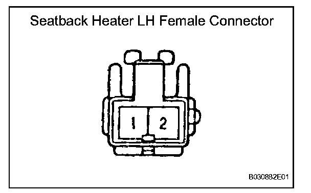 NOTE: After confirming that the seat heater's temperature is rising, immediately remove the battery leads. Failing to do so will cause the seat heater to overheat if the thermostat is malfunctioning.