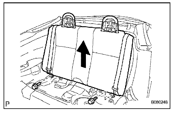 c. Remove the seatback in the direction indicated by the arrow in the illustration.