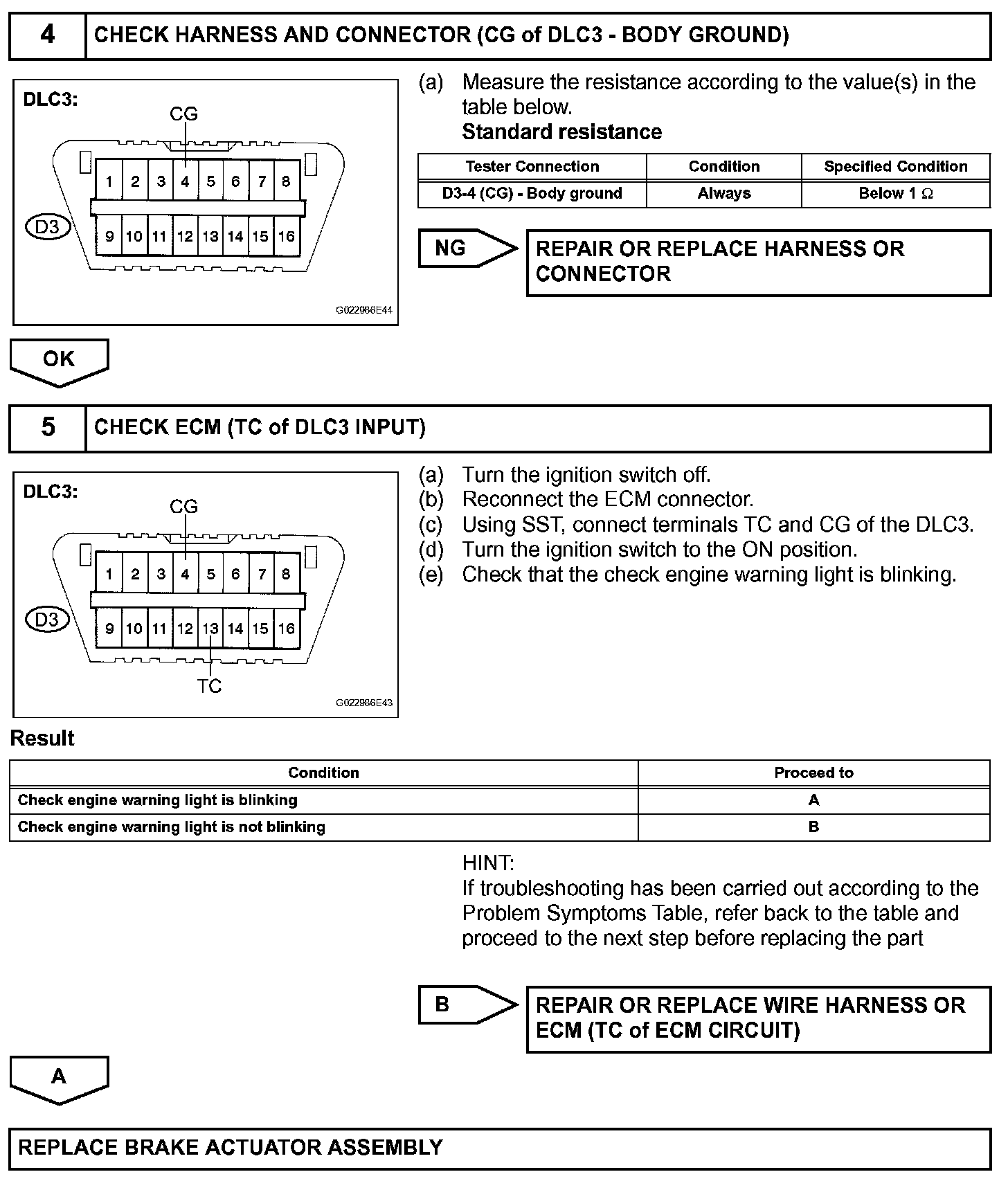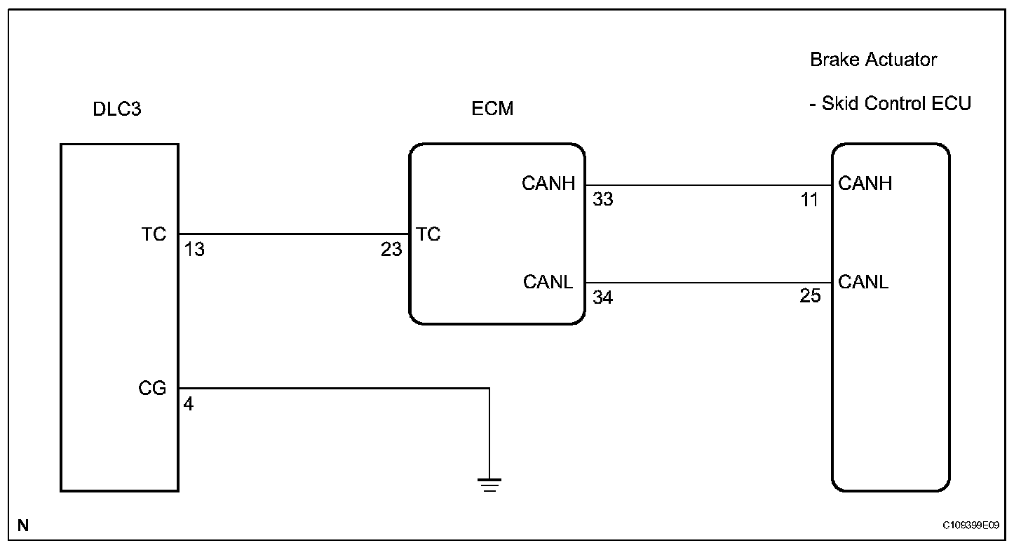 Connecting terminals TC and CG of the DLC3 causes the ECU to display the DTC by blinking the ABS warning light.