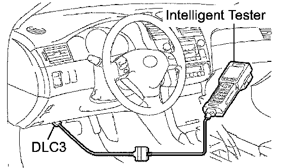 (b) Connect the intelligent tester to the DLC3, and turn the ignition switch to the ON position.