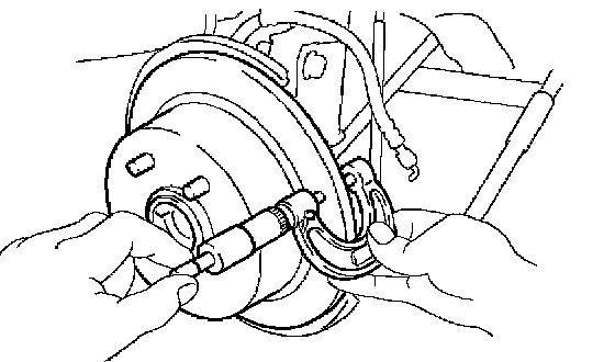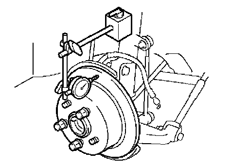 (c) Using a dial indicator, measure the disc runout 10 mm (0.39 inch) away from the outer edge of the rear disc.