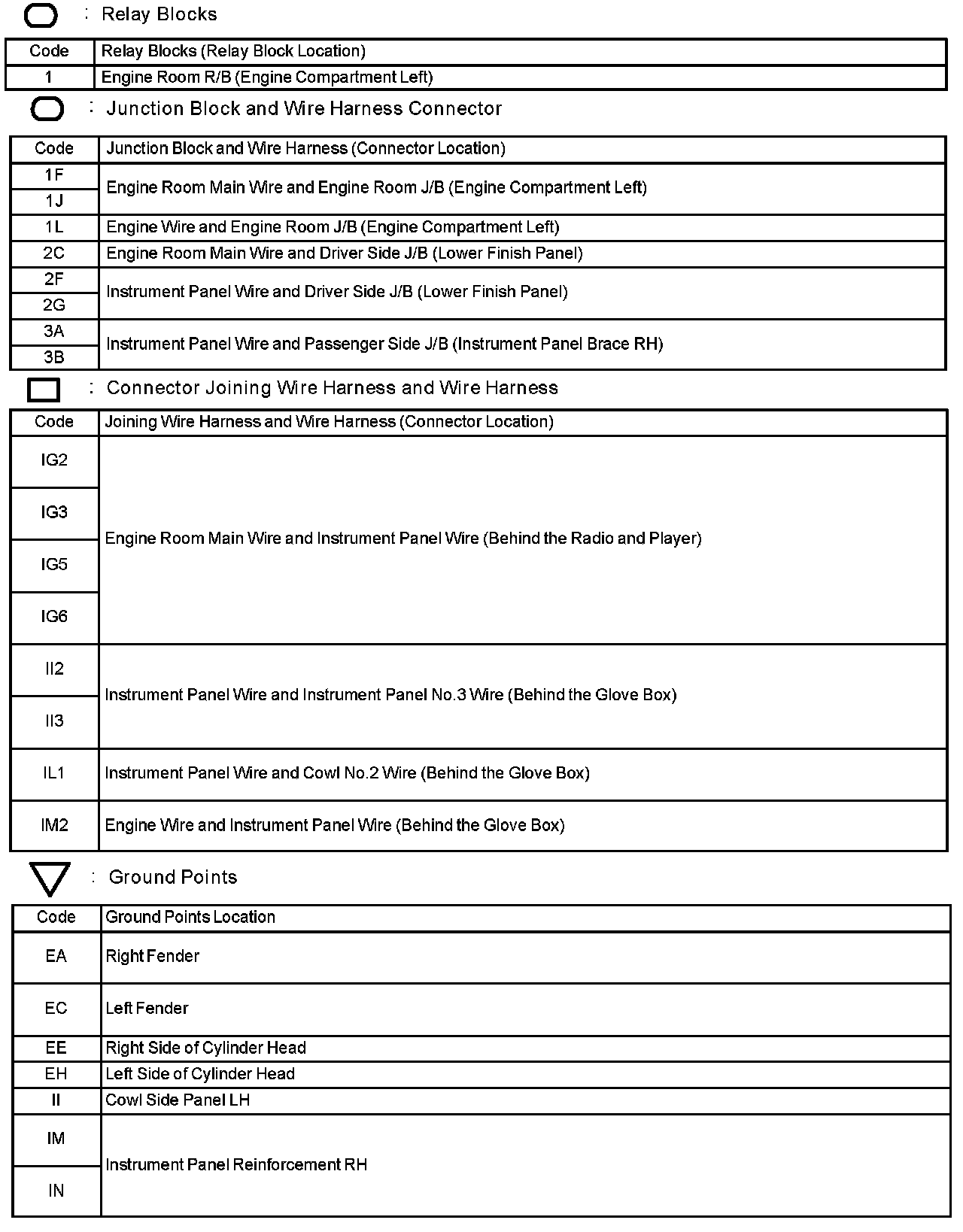 Locations: The locations of components, connectors, ground points, and splices referred to within these diagrams can be found at Vehicle Locations. Locations