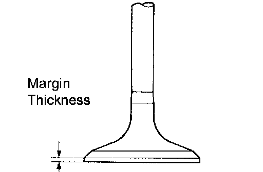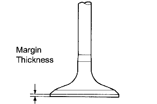 If the margin thickness is less than the minimum, replace the valve.