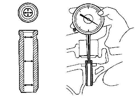 (b) Subtract the valve stem diameter measurement from the guide bushing inside diameter measurement.