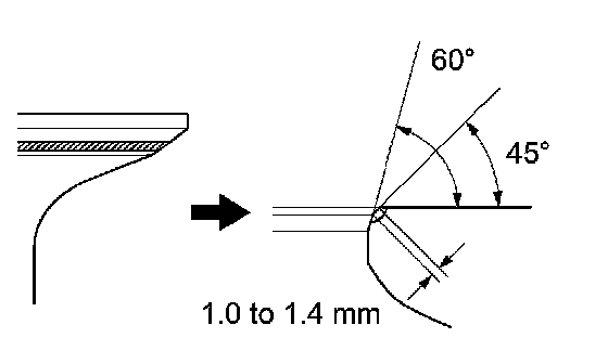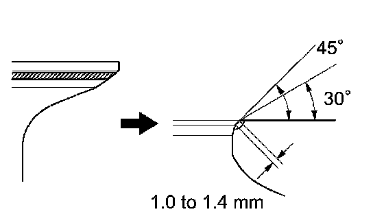 (3) Check that the valve seat contact is in the middle of the valve face with the width between 1.0 to 1.4 mm (0.039 to 0.055 inch).
