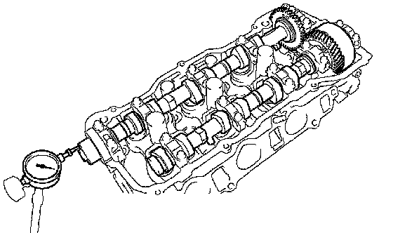 (b) Using a dial indicator, measure the thrust clearance while moving the camshaft back and forth.