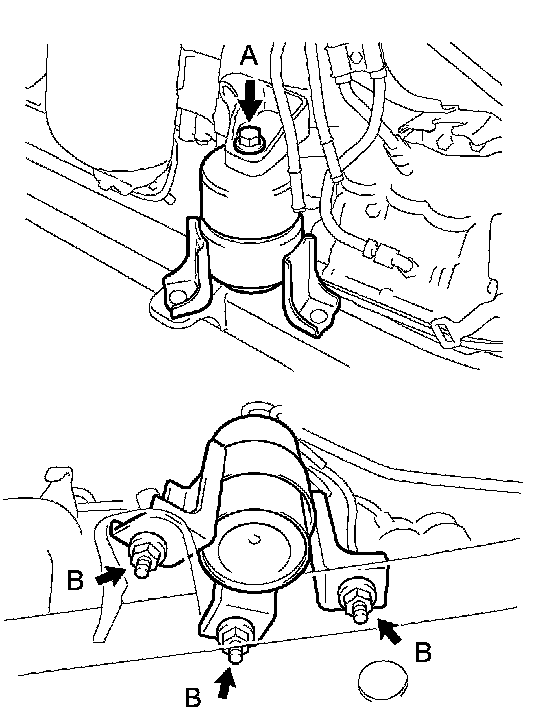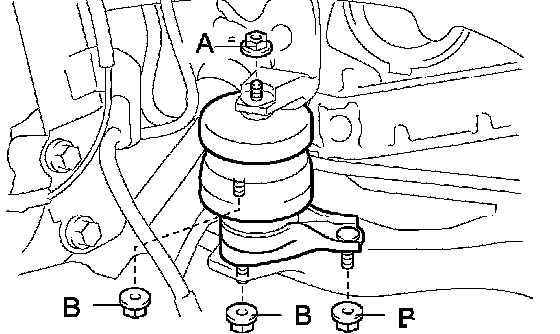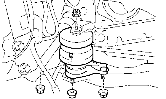 (a) Remove the 3 nuts and bolt. Then separate the engine mounting insulator.