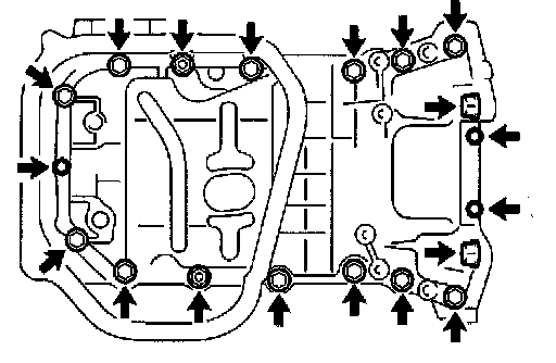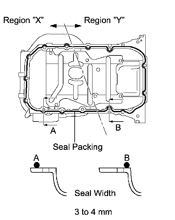 ^ Install the oil pan within 3 minutes after applying seal packing.