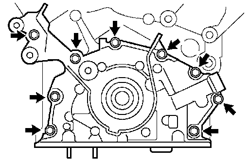 (g) Install the oil pump by tightening the 9 bolts uniformly.