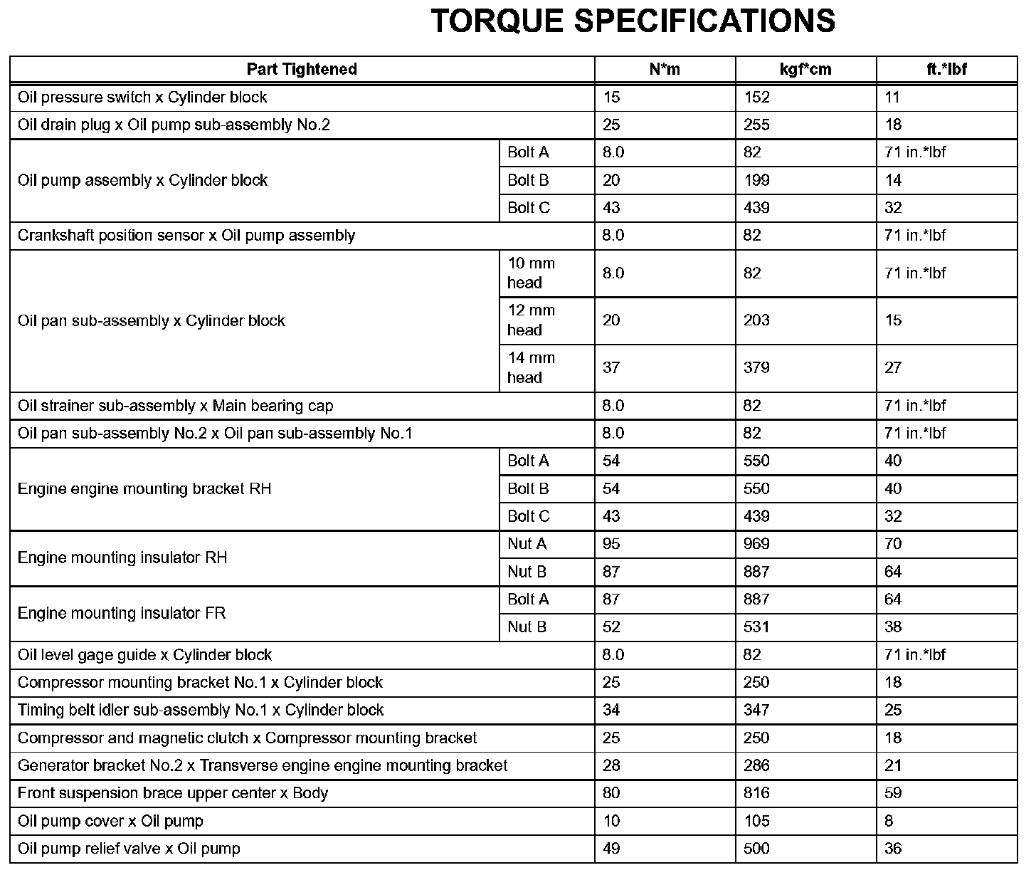Lubrication - Torque Specifications: