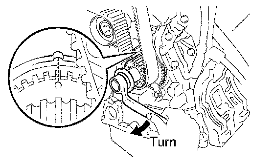 (2) Turn the crankshaft clockwise, and align the timing mark of the crankshaft timing pulley with the oil pump body.