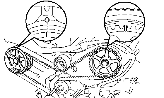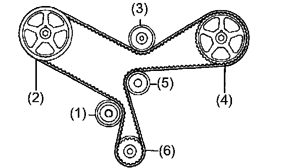 (1) If the installation marks have disappeared, put new installation marks on the timing belt before removing.