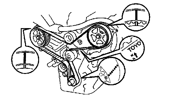 (b) If reusing the timing belt, check that there are 4 installation marks on the timing belt as shown in the illustration.