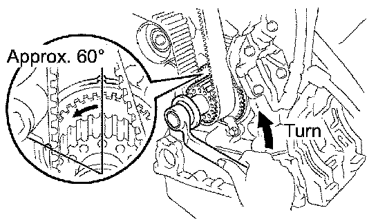 (1) Turn the crankshaft counterclockwise by approximately 60°.