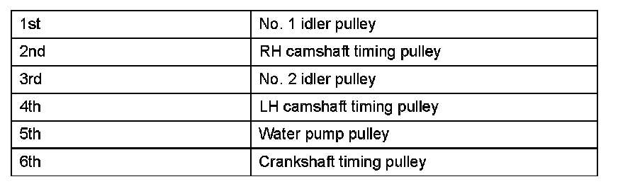 HINT: Be sure to return the RH and LH camshaft timing pulleys to their original locations when reassembling.