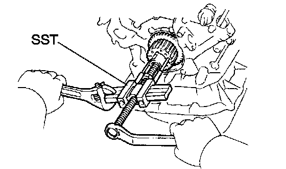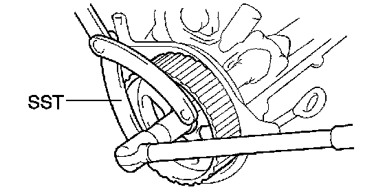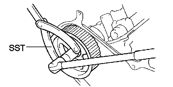 (c) Using SST, remove the crankshaft timing pulley.
