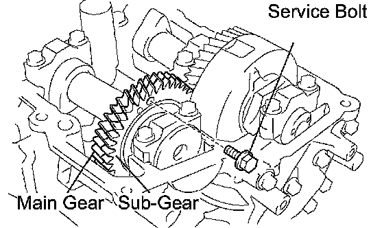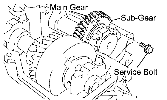 (b) Secure the exhaust camshaft sub gear to the main gear with a service bolt.