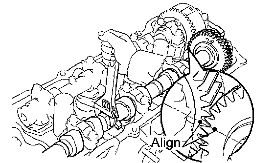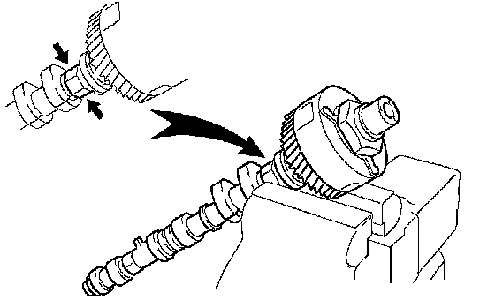 HINT: When removing the camshaft, make certain that the torsional spring force of the sub gear has been eliminated by installation of the service bolt.