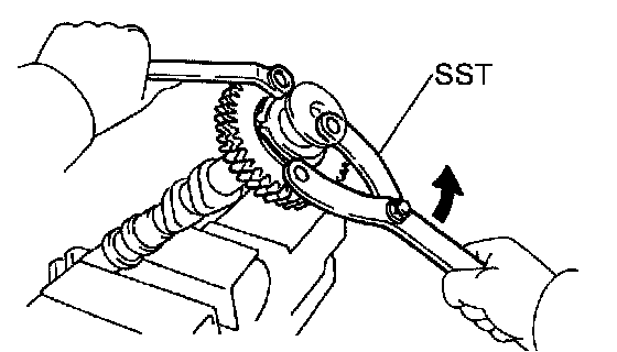 (b) Using SST, turn the sub gear counterclockwise, and remove the service bolt.