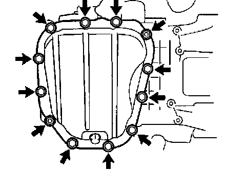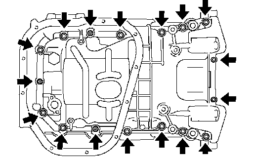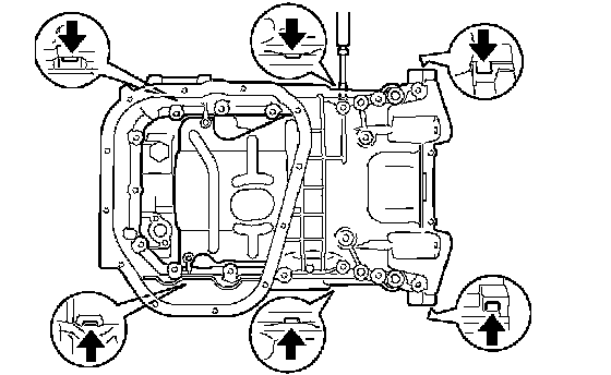 NOTICE: Be careful not to damage the contact surfaces of the oil pan and cylinder block.