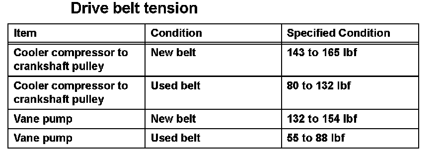 ^ A "used belt" is a belt which has been used on a running engine for 5 minutes or more.