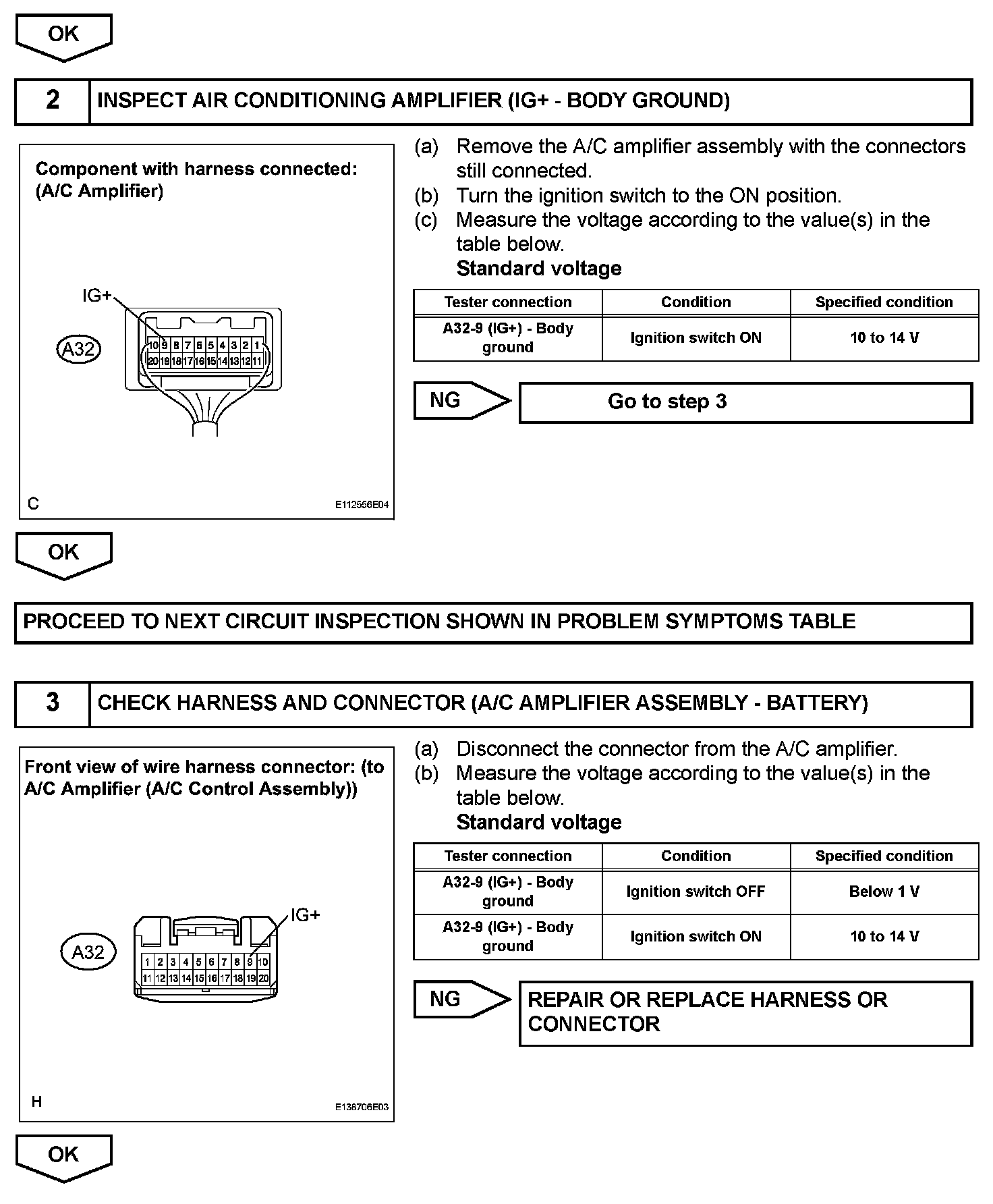 HINT: Start the engine before inspection. Check the IG1 relay or battery if the engine does not start. If the engine still does not start, see the SFI system.