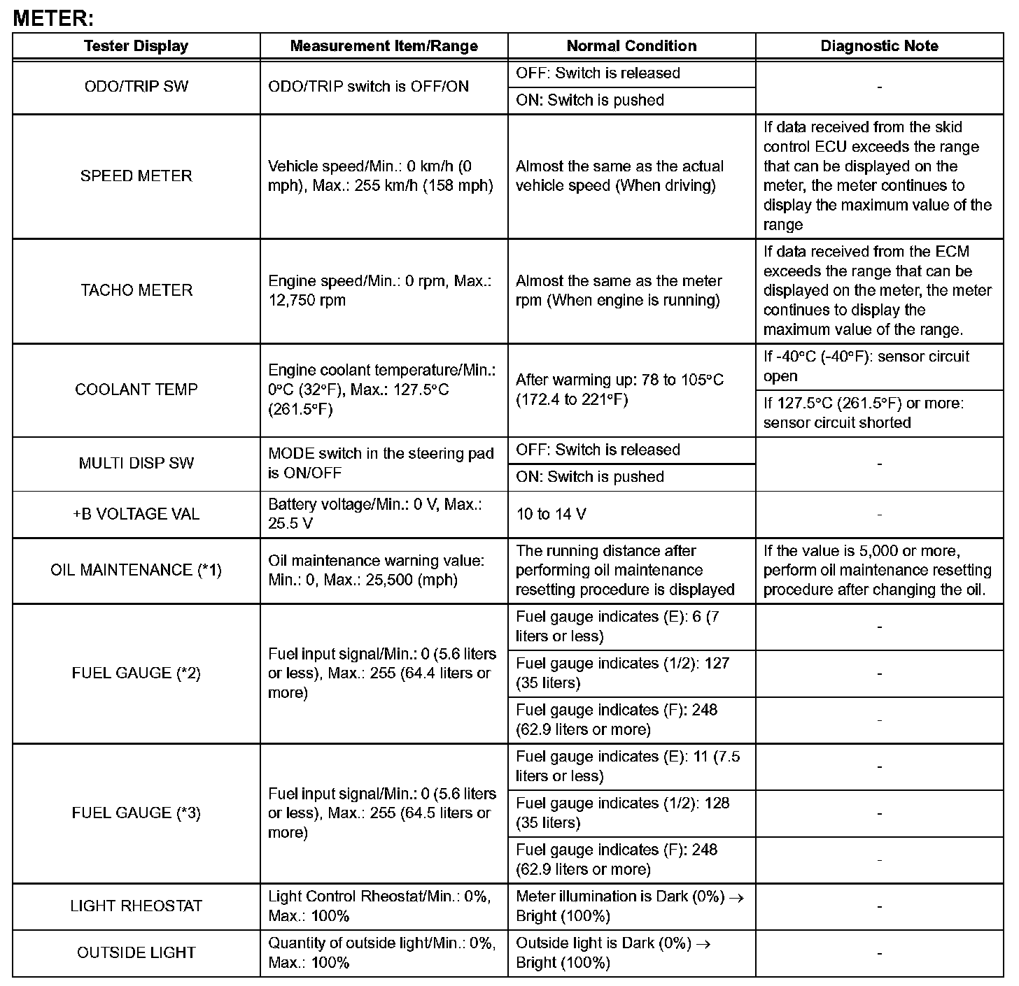 6. Enter the following menus: DIAGNOSIS / OBD/MOBD / METER / DATA LIST.