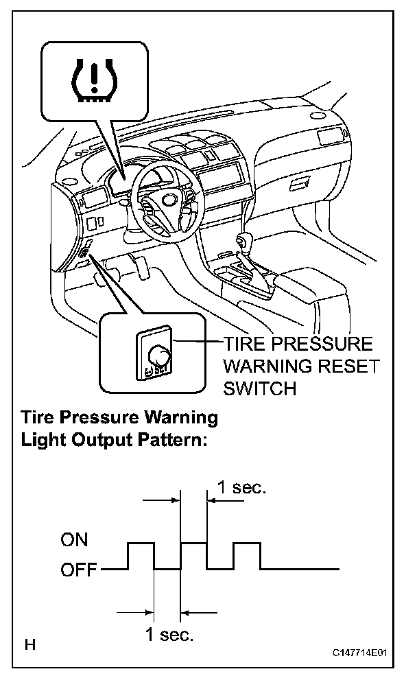 (f) Check that the tire pressure warning light blinks 3 times (1 second ON, 1 second OFF).