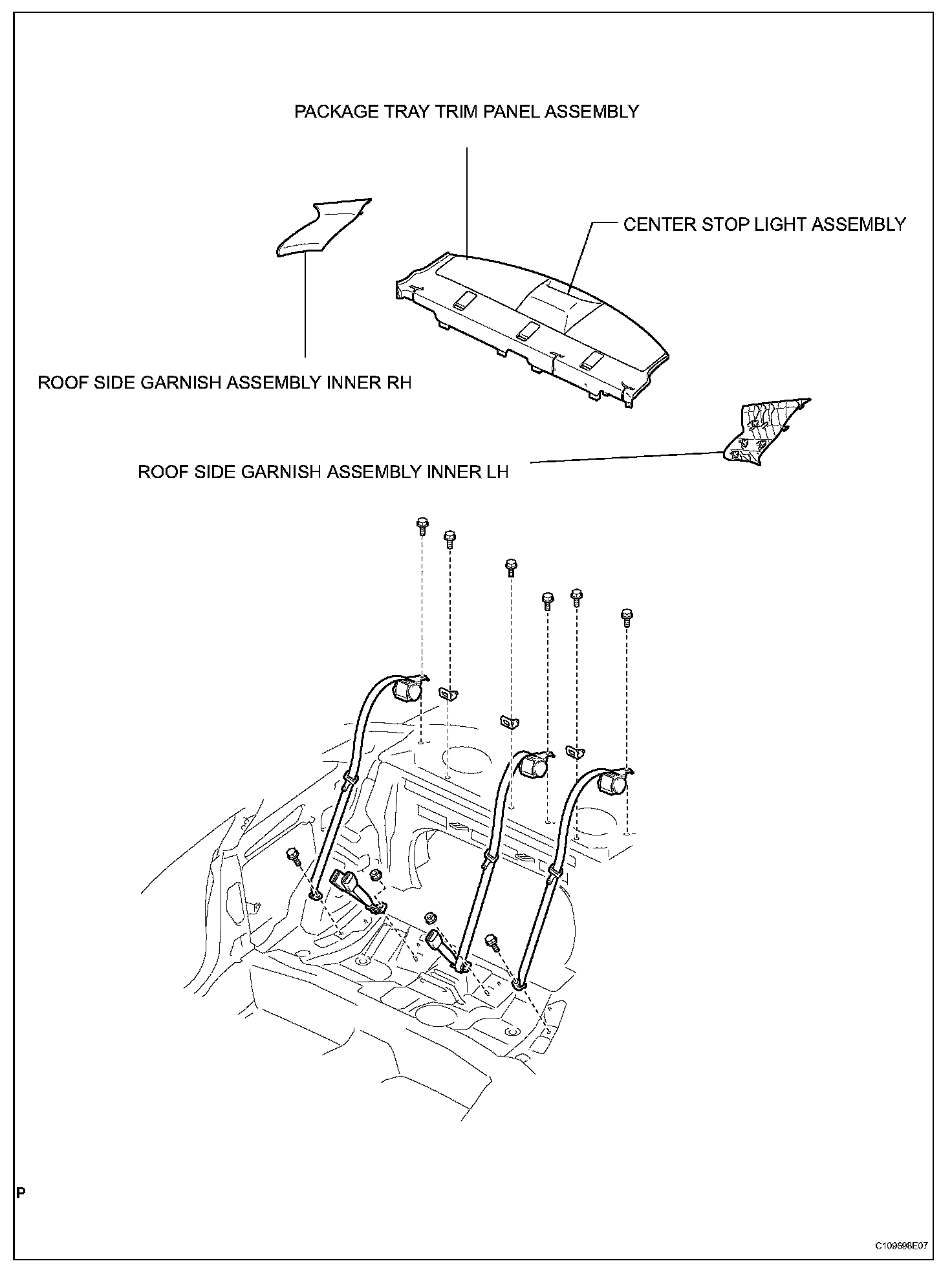 9. REMOVE ROOF SIDE GARNISH ASSEMBLY INNER RH
